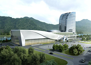 雅安熊猫会展中心屹立在清白江畔,外观上形似扬帆起航的巨轮,两座建筑并排而立,不对称造型呈现出建筑美感。为追求******限度开发空间,采用大跨度无柱空间设计,建筑结构形式采用钢结构主体,钢结构梁的******跨度超过46米。外墙采用双层金属、玻璃幕墙,透过玻璃幕墙,紫琅美景尽收眼底。